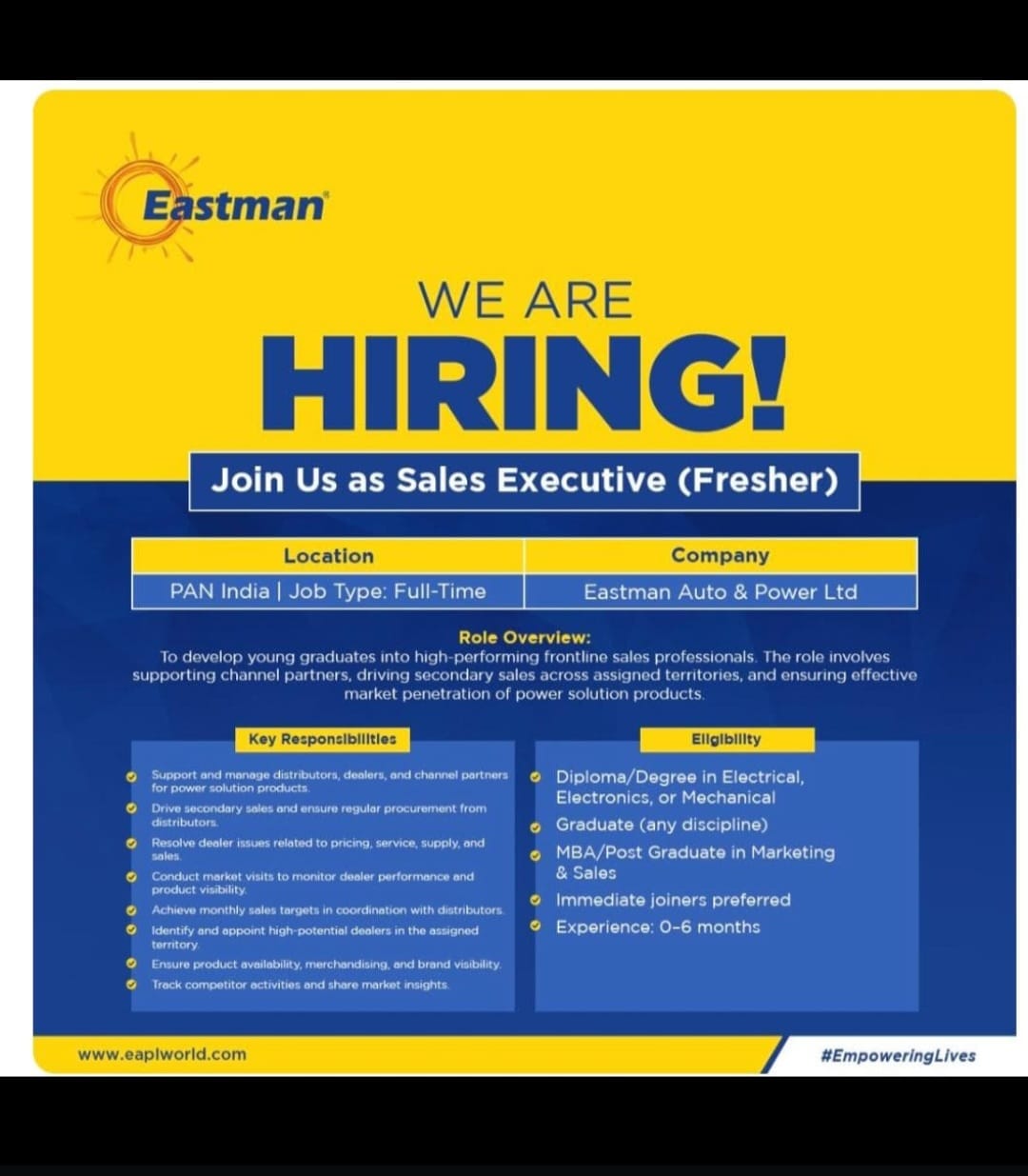 Field sales Executive ( Eastman Auto & Power Ltd. (Solar) )